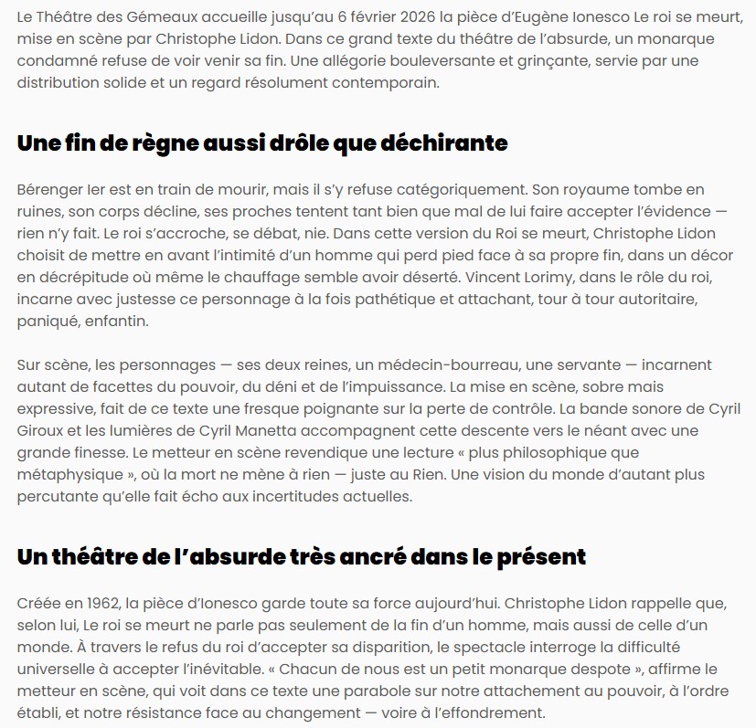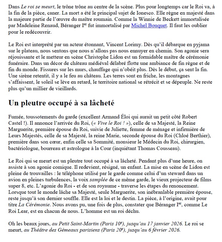 LE ROI SE MEURT - d' Eugène IONESCO