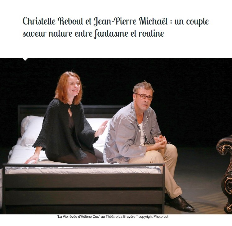 Passionnée, désabusée, nostalgique ou sexy, Christelle Redoul (rendue célèbre par son rôle dans Nos chers voisins) s’affirme comme une interprète exceptionnelle : étonnante, touchante, fantasmagorique. Campant à merveille une Helen Cox insaisissable, elle magnétise durant tout le spectacle (1 heure 15) le public du Théâtre de La Bruyère.
